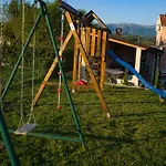 Die Villa Pleter By Villas Guide Otavice verfügt über eine Terrasse mit Aussicht auf die Berge sowie einen Swimmingpool.